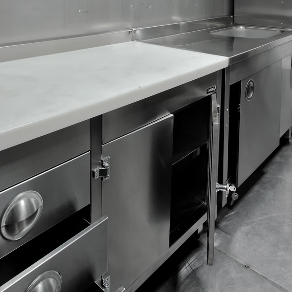 It is designed to prepare the  foods for the customer needs.It can be produced as portable ,constant cabinet and shelf  in order to gain place during the journey.It is produced by complete stainless steel.
